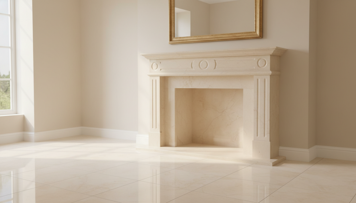 КаминыКрема Марфил Экстра, полированная, для каминов превращает портал в монолитный кремовый акцент высшего качества. Жаростойкий испанский мрамор без рисунка и включений идеален для топок, зеркальная поверхность усиливает отражение пламени и подчёркивает абсолютную чистоту камня.