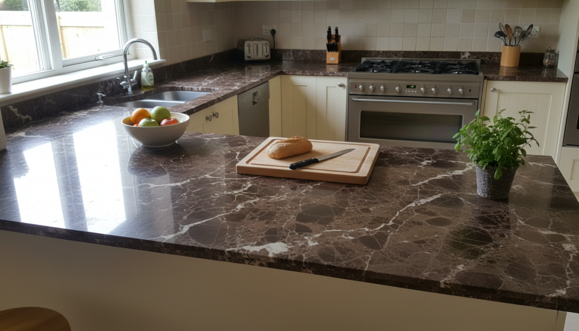 СтолешницыСтолешницы из Имперадор Дарк Классик, полированная, выдерживают кухонную эксплуатацию: шоколадный фон с белыми прожилками создаёт премиум-эффект. Испанский мрамор легко защищается от пятен, зеркальная полировка обеспечивает идеальный блеск.
