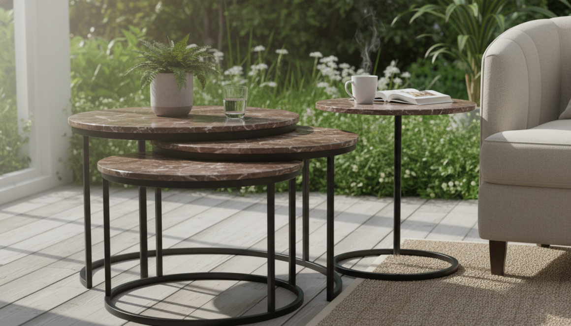 СтоликиСтолешницы столиков из полированной плитки Имперадор Дарк Классик превращают журнальный или прикроватный столик в яркий элемент благодаря шоколадному тону с контрастными венами. Мрамор устойчив к нагрузкам и сохраняет зеркальный блеск.