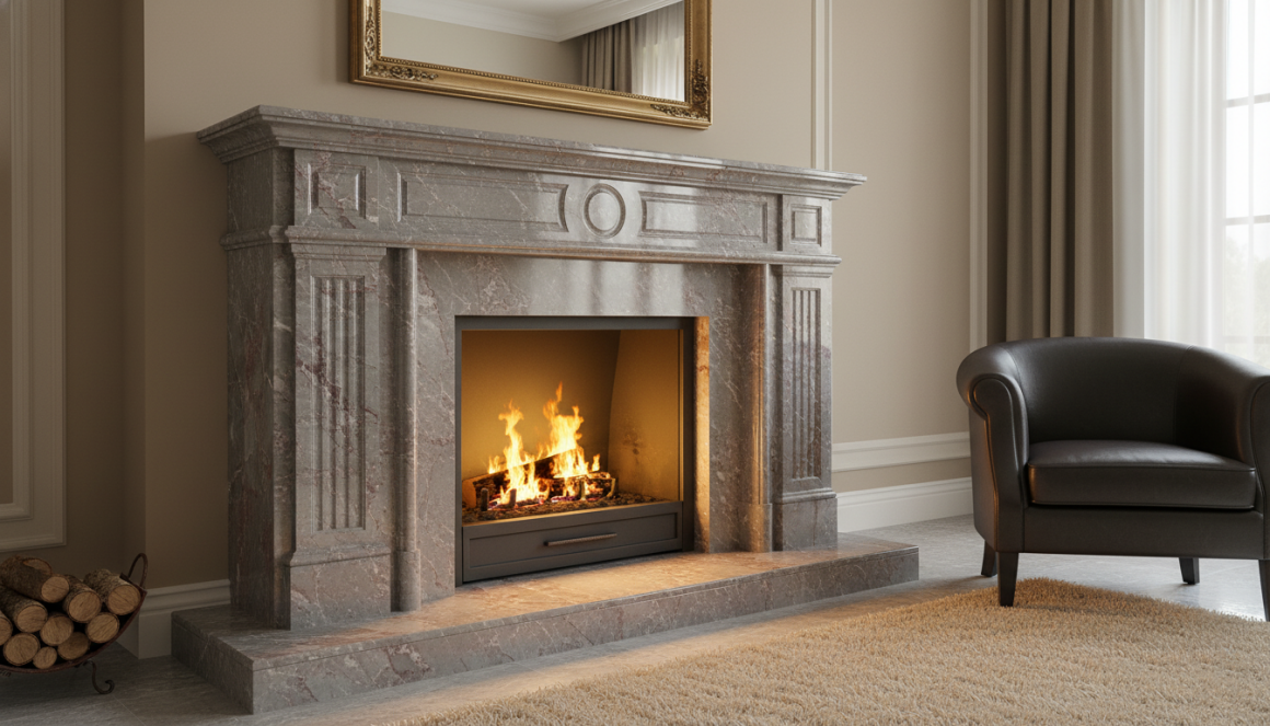 КаминыСаломе, полированная, для каминов мягко подчёркивает пламя светло-бежевым теплом и золотистыми венами. Жаростойкий турецкий мрамор идеален для порталов и топок, зеркальная поверхность усиливает отражение огня.