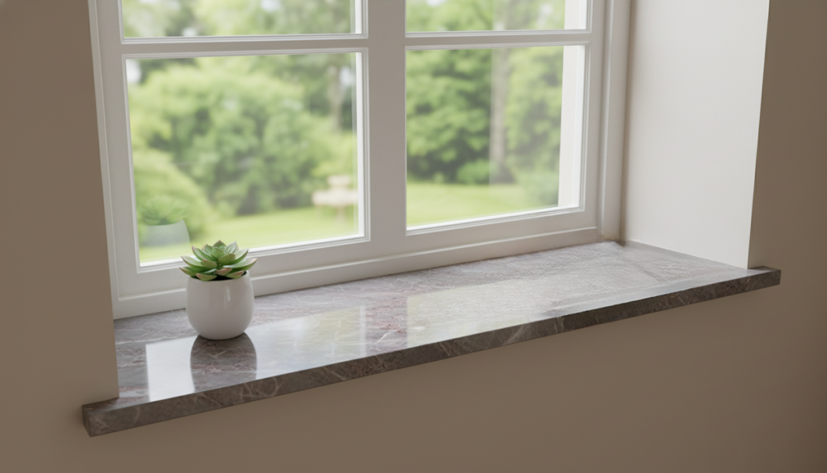 ПодоконникиПодоконники из полированной плитки Саломе в светло-бежевом тоне с золотистыми прожилками гармонично дополняют классические интерьеры. Зеркальная поверхность устойчива к влаге и ультрафиолету, сохраняя тёплый оттенок десятилетиями.