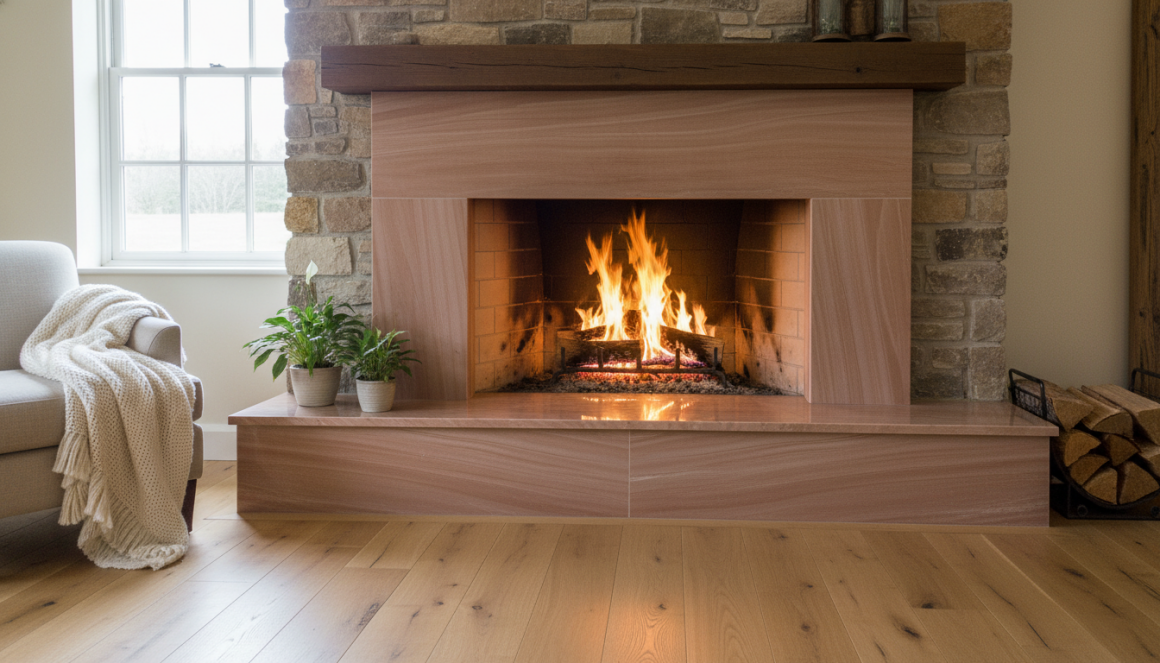 для каминов даёт уютный портал с древесным рисунком в камне: серо-коричневые прожилки на светлом фоне идеально сочетаются с огнём. Жаростойкий мрамор с полировкой усиливает отражение пламени и создаёт атмосферу настоящего камина у дровяного очага. -