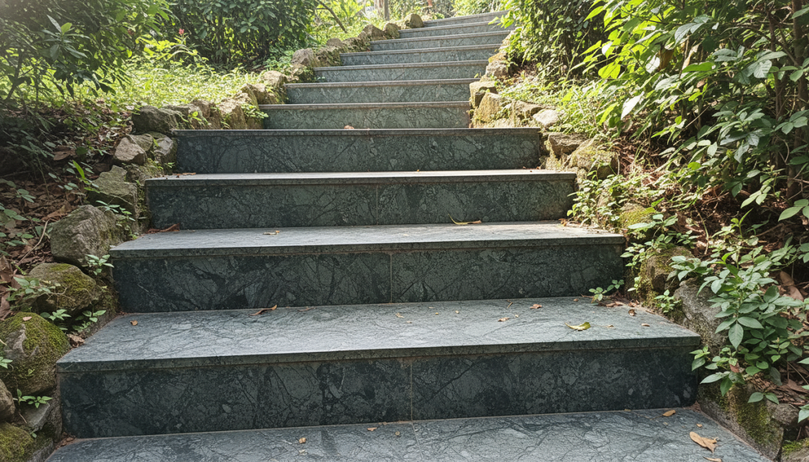 ЛестницыМрамор Верде Гватемала (Verde Guatemala) для лестниц предлагает насыщенный зеленый тон с белыми и темно-зелеными прожилками, создавая экзотический и роскошный вид. Индийский мрамор обеспечивает прочность ступеней и подступенков, полированная или матовая поверхность гарантирует безопасность и долговечность.