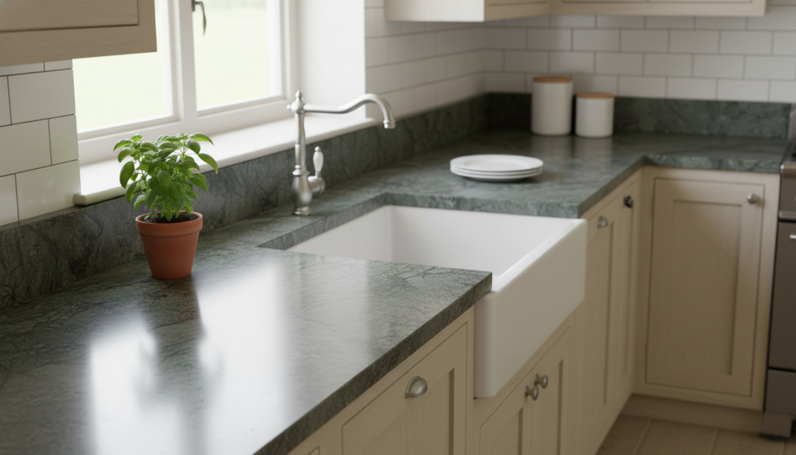 В квартире, загородном домеВерде Гватемала универсален для квартир и загородных домов: насыщенный зеленый оттенок с белыми прожилками вписывается в арт-деко, эклектику и современные стили. Индийский мрамор служит десятилетиями при правильном уходе.