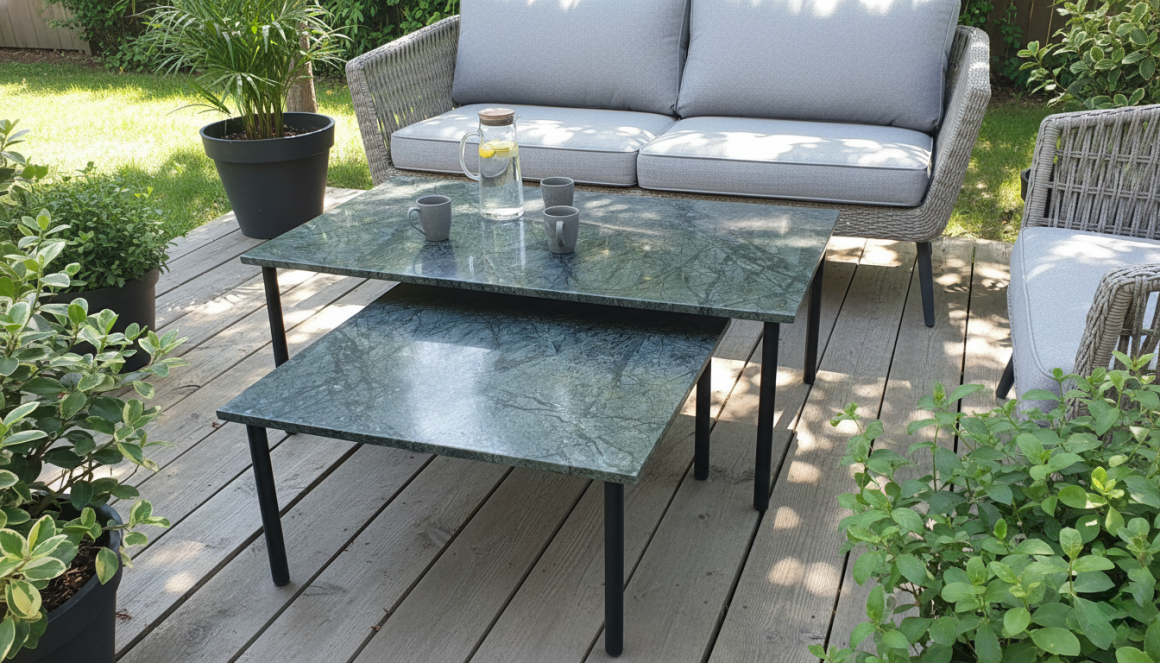 СтоликиСтолешницы столиков из Верде Гватемала превращают журнальный или прикроватный столик в уникальный элемент благодаря глубокому зеленому тону с белыми венами. Мрамор устойчив к нагрузкам и горячим предметам.
