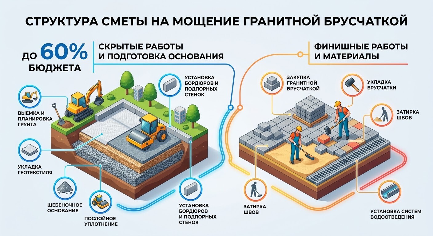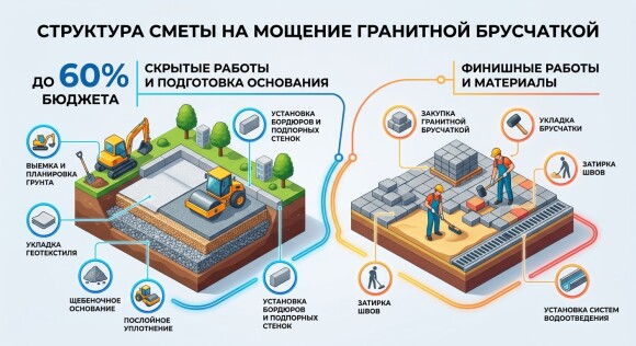 Расчет стоимости мощения гранитной брусчаткой: Инженерная смета и экономика проекта